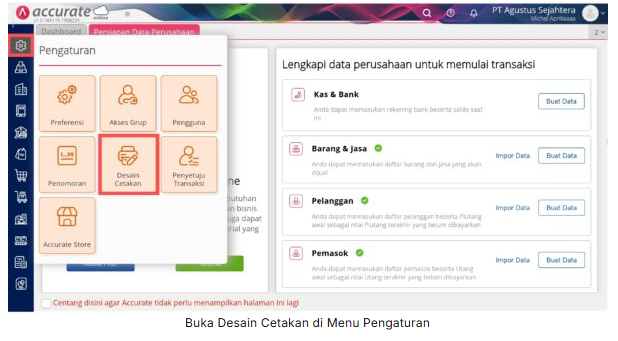 1. Mengakses Desain Cetakan dari menu Pengaturan | Desain Cetakan