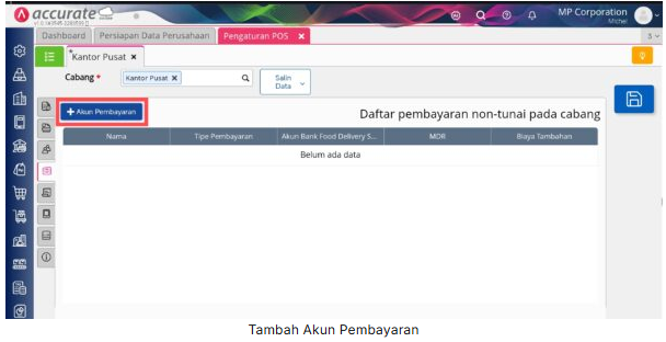 - Klik tanda ( + ) pada Akun & Pembayaran untuk menambahkan Pembayaran Non-Tunai pada Pengaturan POS tersebut.