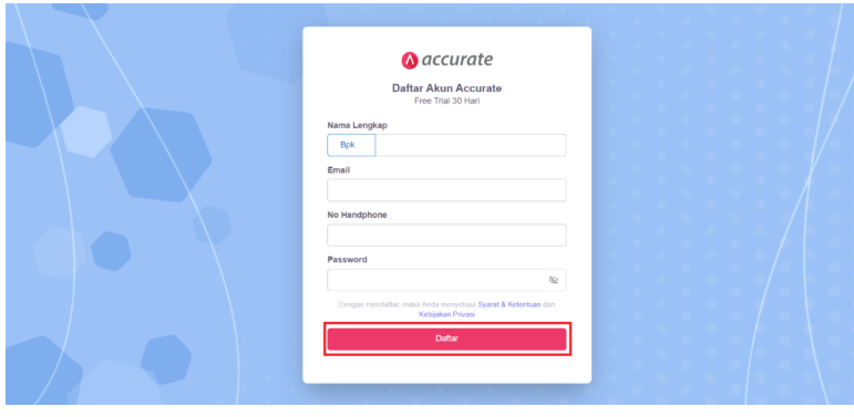 - Terakhir, klik tombol Daftar dan kamu berhasil membuat akun Accurate Online!