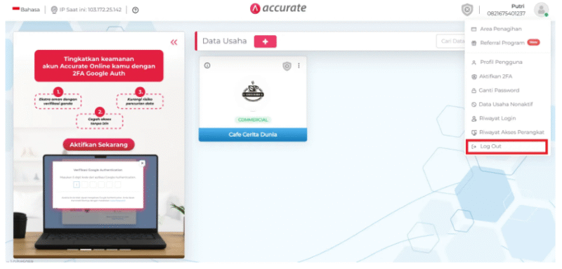 - Selanjutnya, sistem akan menampilkan daftar menu. Jika Kamu ingin log out, silakan langsung klik Log Out pada bagian bawah menu tersebut.