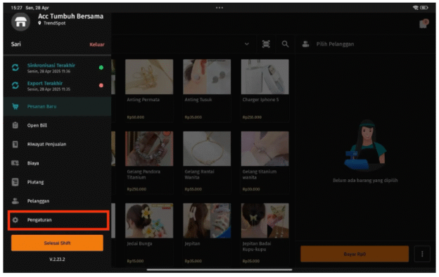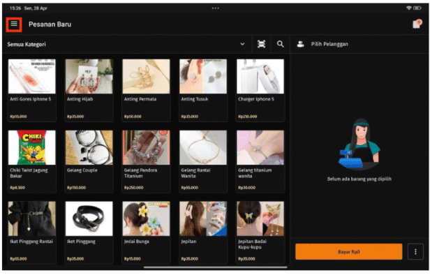 - Setelah itu, masuk ke aplikasi Accurate POS lalu ke menu pojok kiri atas (Hamburger Button) dan akan tampil menu-menu di Accurate POS.