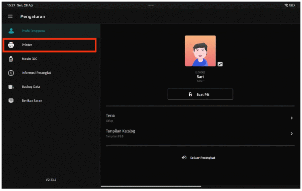 - Lanjut tap menu Pengaturan, lalu pilih Printer.
