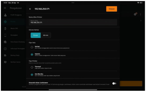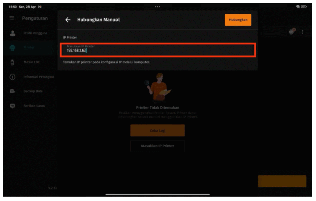 Kamu cukup sambungkan printer ke jaringan yang sama dengan perangkat Accurate POS, lalu atur alamat IP-nya.