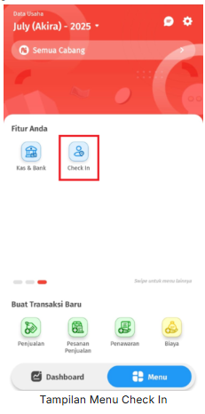 Berikut langkah-langkah untuk menggunakan fitur Check In di Accurate Lite: