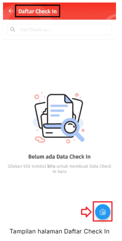 2. Selanjutnya, ke menu Check In | Daftar Check In, dan klik tombol Kamera pada bagian pojok kanan bawah, untuk foto Toko Pelanggan.