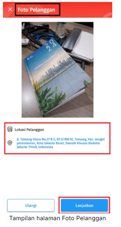 3. Pada halaman Foto PelangganAccurate Lite akan otomatis menampilkan hasil Foto dan Lokasi Pelanggan, lalu klik tombol Lanjutkan.