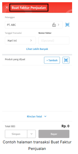 Sedangkan, jika pengguna klik tombol Baru, maka akan tampil halaman transaksi sesuai dengan ikon yang dipilih pada halaman notifikasi, misal Faktur Penjualan.