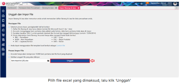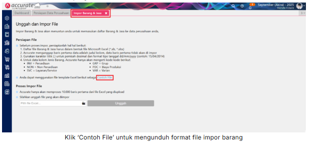 3. Setelah file Excel nya sudah siap, maka saat nya untuk melakukan proses impor ke dalam Accurate, berikut langkah-langkahnya: