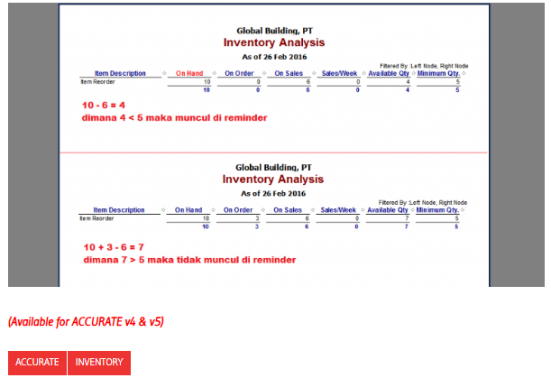 Jumlah Kuantitas Di Bawah Minimum Reorder, Tetapi Tidak Muncul Di Reminder di Accurate Desktop