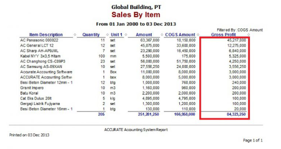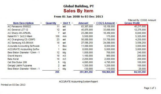 Bagaimana mendapatkan laporan penjualan per barang dengan mengurutkan item barang dari Gross Profit(laba kotor) yang paling tinggi, seperti pada contoh gambar berikut ini,