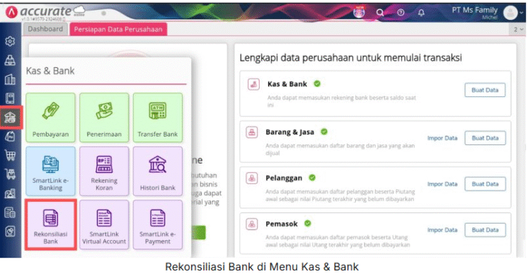 Cara untuk membuat rekonsiliasi bank adalah sbb: