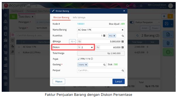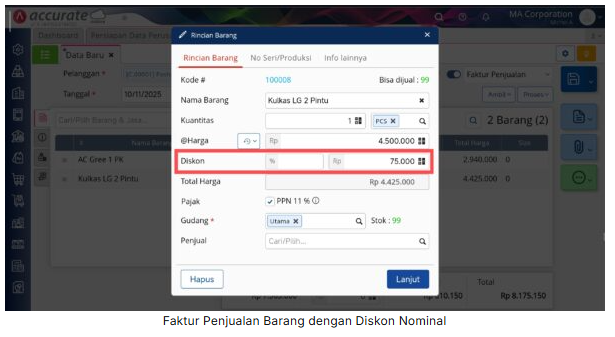 Berikut langkah-langkah untuk menampilkan diskon persentase atau diskon nominal pada Desain Cetakan Faktur Penjualan: