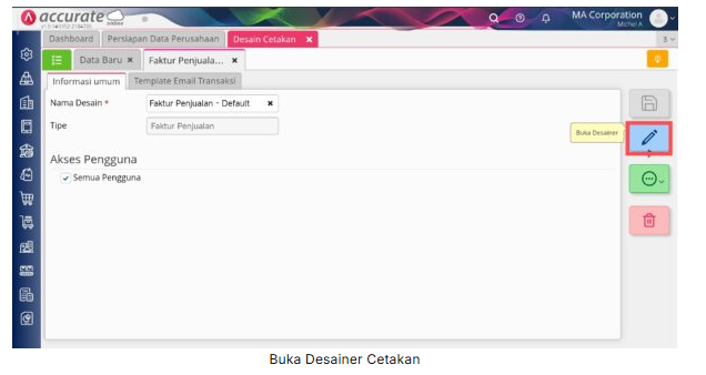 3. Selanjutnya Buka Desainer dengan klik tombol pensil di samping kanan tampilan