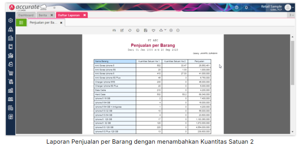 7. Dan berikut tampilan Laporan Penjualan per Barang dengan menambahkan variabel Kuantitas Satuan Ke 2.