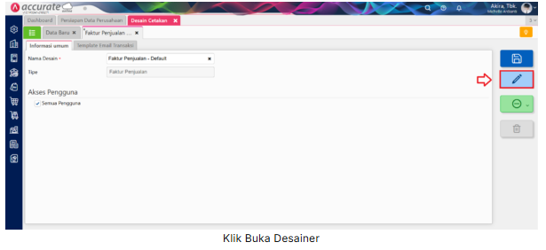2. Pilih desain cetakan tersebut, dan klik tombol Buka Desainer (icon Pensil)