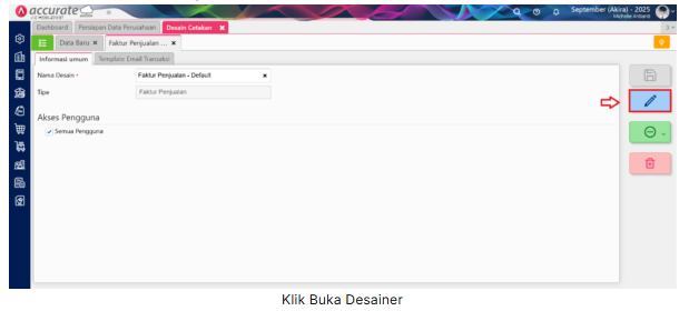 2. Pilih desain cetakan tersebut, dan klik tombol Buka Desainer (icon Pensil).