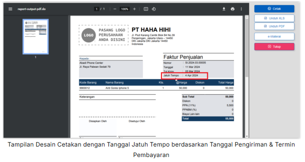 Berikut langkah-langkah menampilkan Tanggal Jatuh Tempo berdasarkan Tanggal Pengiriman & Termin Syarat Pembayarn pada Desain Cetakan Faktur Penjualan :