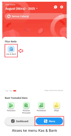 1. Pada halaman menu Accurate Lite, silahkan klik fitur Kas & Bank