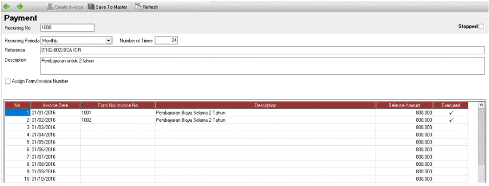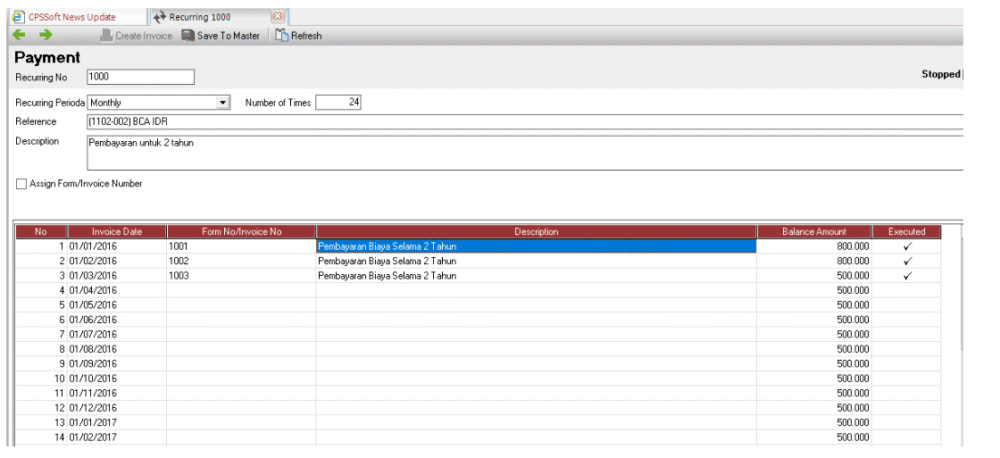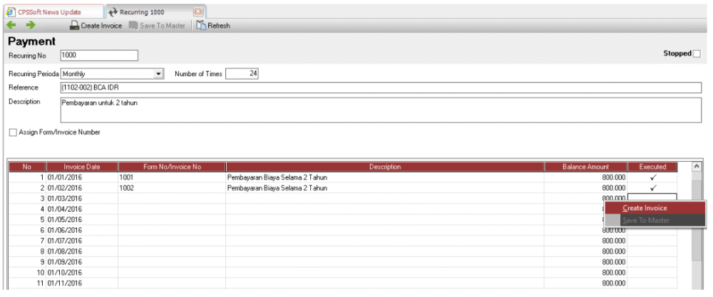 2. Dari List Recurring akan terlihat spt gambar di bawah ini.