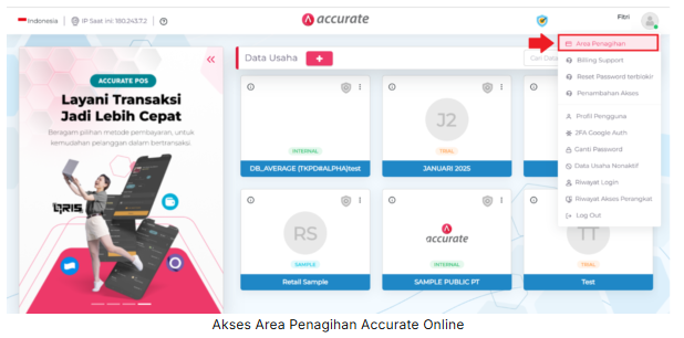 1. Masuk ke Accurate Online, lalu ke menu Area Penagihan.