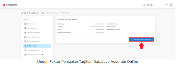 Mengunduh Faktur Penjualan atas Tagihan Database Accurate Online