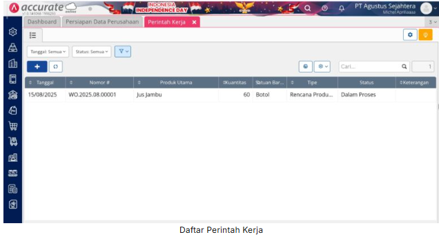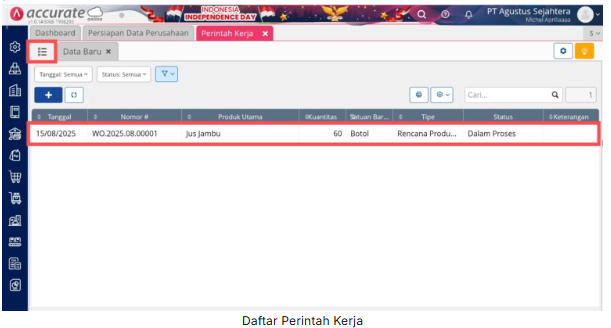 1.Buka Perintah Kerja dari menu Manufaktur | Perintah Kerja