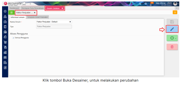 2. Pilih desain cetakan tersebut, lalu klik tombol Buka Desainer (icon Pensil)
