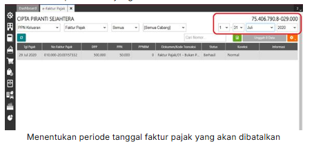 2. Tentukan periode faktur pajak yang akan dibatalkan pada kolom yang tersedia.