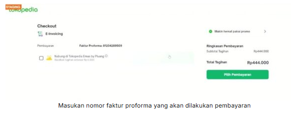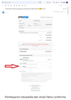 2. Pada Email Faktur Proforma yang Anda terima, pilih pembayaran Tokopedia