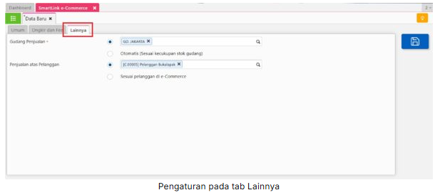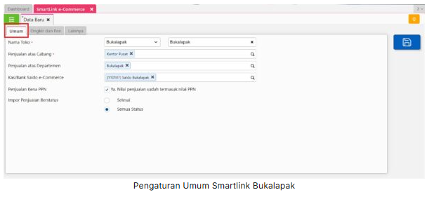 - Penjualan atas Departemen : isikan nama Departemen yang sesuai, jika Anda ingin memisahkan penjualan per e-commerce. Atau kosongkan jika Anda tidak mempunyai kebutuhan akan hal tersebut.