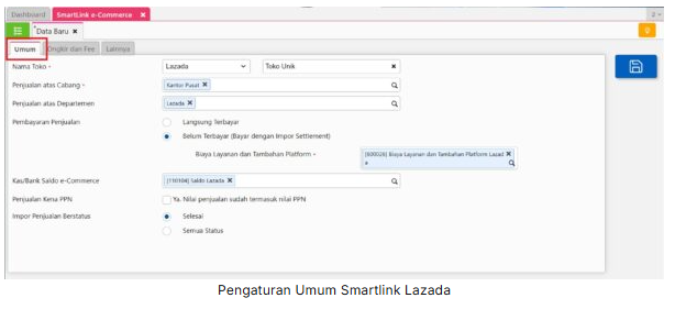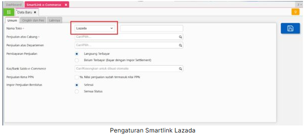 Berikut ini informasi pengaturan Smartlink e-Commerce Lazada pada Accurate Online :