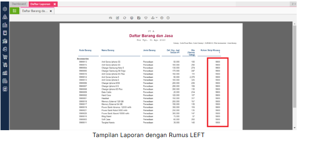 7. Berikut tampilan laporan dengan rumus LEFT sesuai dengan ilustrasi