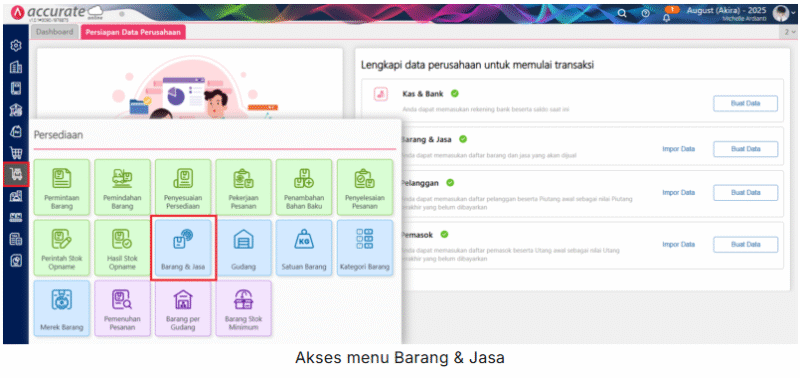 - Selanjutnya agar transaksi penjualan aset tetap ini bisa dikenakan PPN dan diakui sebagai piutang (tidak tunai), maka perlu untuk membuat barang baru dengan jenis barang adalah Non Persediaan. Namun sebelumnya perlu untuk memasukan akun perantara Transaksi Aset Tetap pada Akun Perkiraan Penjualan melalui menu Pengaturan | Preferensi.