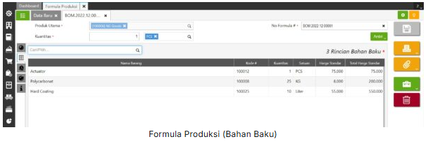 Pada bulan Desember PT A memproduksi barang NG Goods sebanyak 1 PCS dengan menggunakan formula produksi seperti berikut ini :