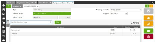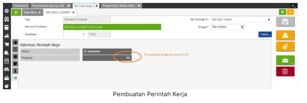 Selanjutnya Formula Produksi tersebut dibuatkan Perintah Kerja-nya seperti berikut ini :