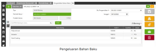 Pengeluaran Bahan Baku atas Perintah Kerja tersebut, sehingga progress SPK menjadi 30%.