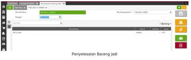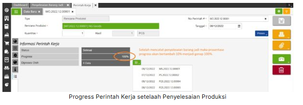 Menyelesaikan Proses produksi, sehingga progress SPK berubah menjadi 100%.