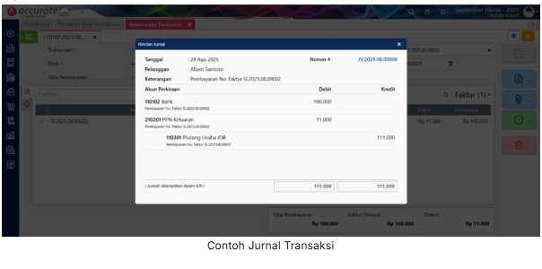 5. Sehingga untuk jurnal yang terbentuk atas transaksi Penerimaan Penjualan nya seperti contoh berikut ini,