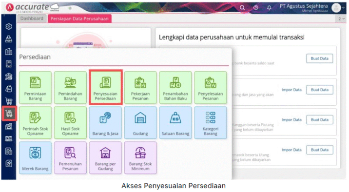 1. Masuk ke menu Persediaan | Penyesuaian Persediaan.
