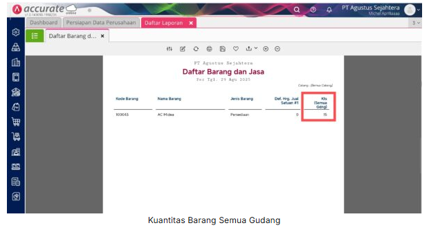 Berikut tampilan Laporan Daftar Barang & Jasa.