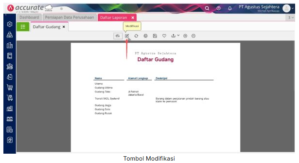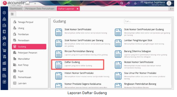 1. Buka Laporan Daftar Gudang dari menu Laporan | Daftar Laporan | Gudang.