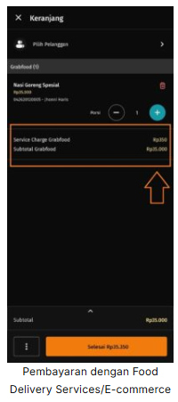 2. Food Delivery Services/E-commerce, dengan Service Charge pilihan Persentase sebesar 1% dan tidak dikenakan PPN, maka didapatkan nilai pembayaran sebesar Rp 35.350 dengan harga jual produk sebesar Rp 35.000.