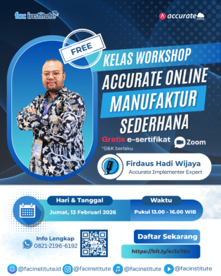 Kami, FAC Institute Jasa resmi training Accurate mengucapkan terima kasih yang sebesar-besarnya kepada seluruh peserta Workshop Accurate Online Manufaktur Sederhana yang telah berlangsung pada hari Jumat, 13 Februari 2026 pukul 13.00–16.00 WIB.